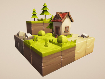 Beautiful handmade textures packaged in low poly models that come with a demo scene. In fact, ease of use and the construction of cool little environments, for puzzles or arcade games.