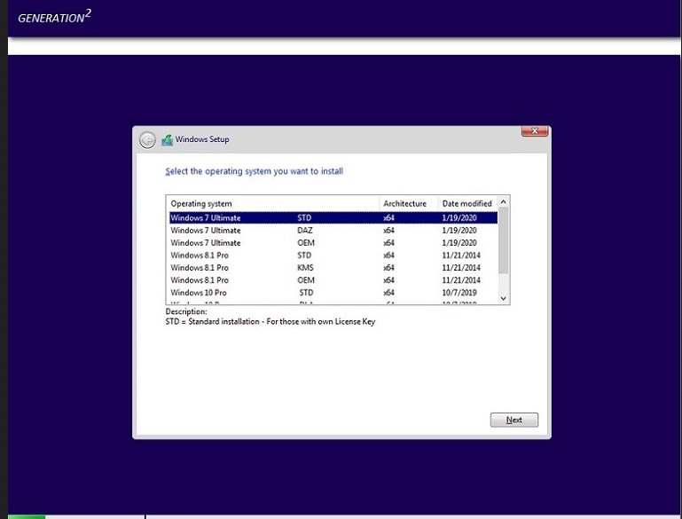 * STD = Standard installation – For those with own License Key